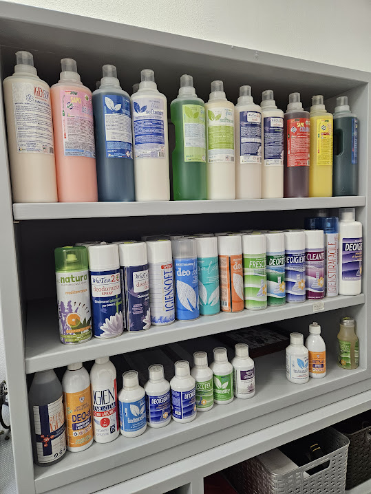 Disponiamo di una selezione di prodotti per profumare, igienizzare e curare tessuti e ambienti.